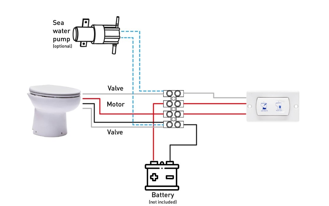 SANIMARIN 31 COMFORT, compact toilet. SANIMARIN 31 COMFORT PLUS, compact toilet. Het spoelmechanisme wordt geactiveerd door een 2-standenschakelaar die ofwel spoelen of malen/pompen inschakelt.